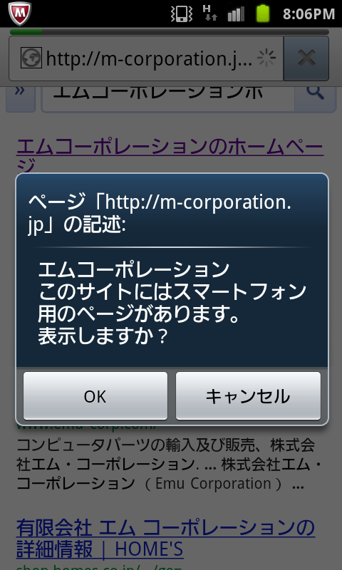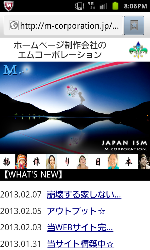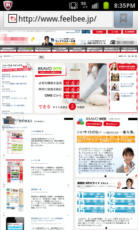 まず弊社の公式WEBサイトをスマートフォンから見た時の表示からどうぞ。